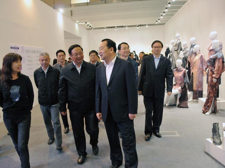11月3日下午,蘇豪控股集團董事長王正喜,總裁周勇陪同江蘇省副省長張雷參觀“紫金獎”文化創意大展,一行專門參觀了由江蘇省蘇豪控股集團主辦,江蘇愛濤文化產業公司承辦的民間工藝與時裝設計專項賽作品展。