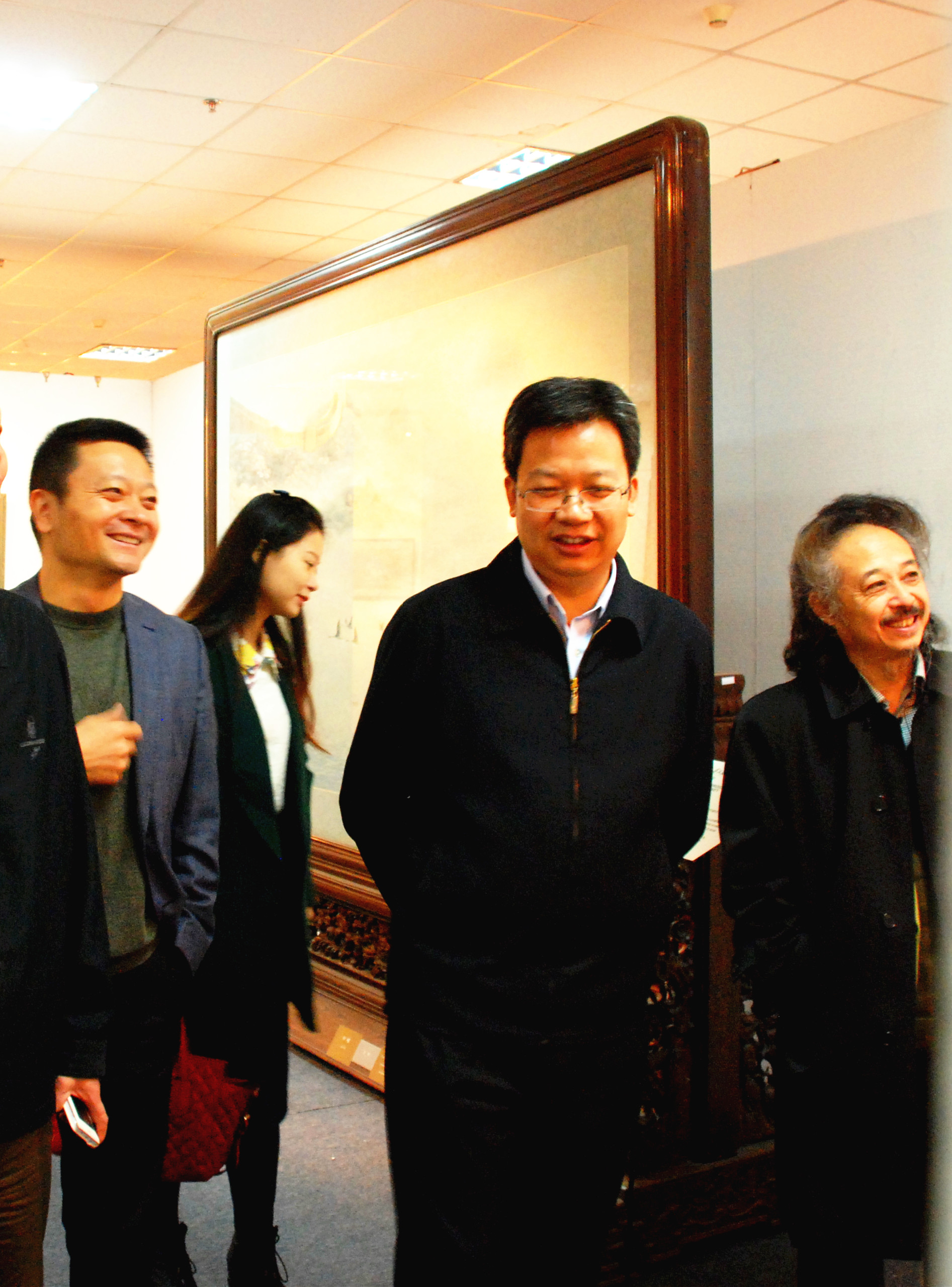 11月24日上午商務部服貿司許波副司長等領導在愛濤文虎集團董事長張宇峰陪同下參觀愛濤藝術中心。參觀過程中許波司長對我館的館藏精品大為贊嘆,頻頻駐足觀看。參觀結束后許波司長與董事長就集團的文化產業發展規劃進行了深切座談。