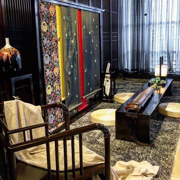 本屆文博會上,由江蘇愛濤文化聯(lián)手福佑設計共同策劃的“創(chuàng)意客廳”美學生活館驚艷亮相,獲得參觀領導和業(yè)內(nèi)專家的高度好評、吸引眾多觀眾并饒有興趣地洽談需求個性定制。空間陳設深入挖掘獨特鮮明的中華文化、江蘇文化,提煉出一種呼喚性的人文情懷,貼近文博會“突出文化驅(qū)動、塑造城市靈魂”的主題。作品運用多種非遺手工技藝,最大化地彰顯造物品質(zhì)和造境品格,注重文化創(chuàng)意產(chǎn)品藝術品位和經(jīng)濟效益相互依托的重要性,締造走進生活、時尚百變的雅致文化空間。