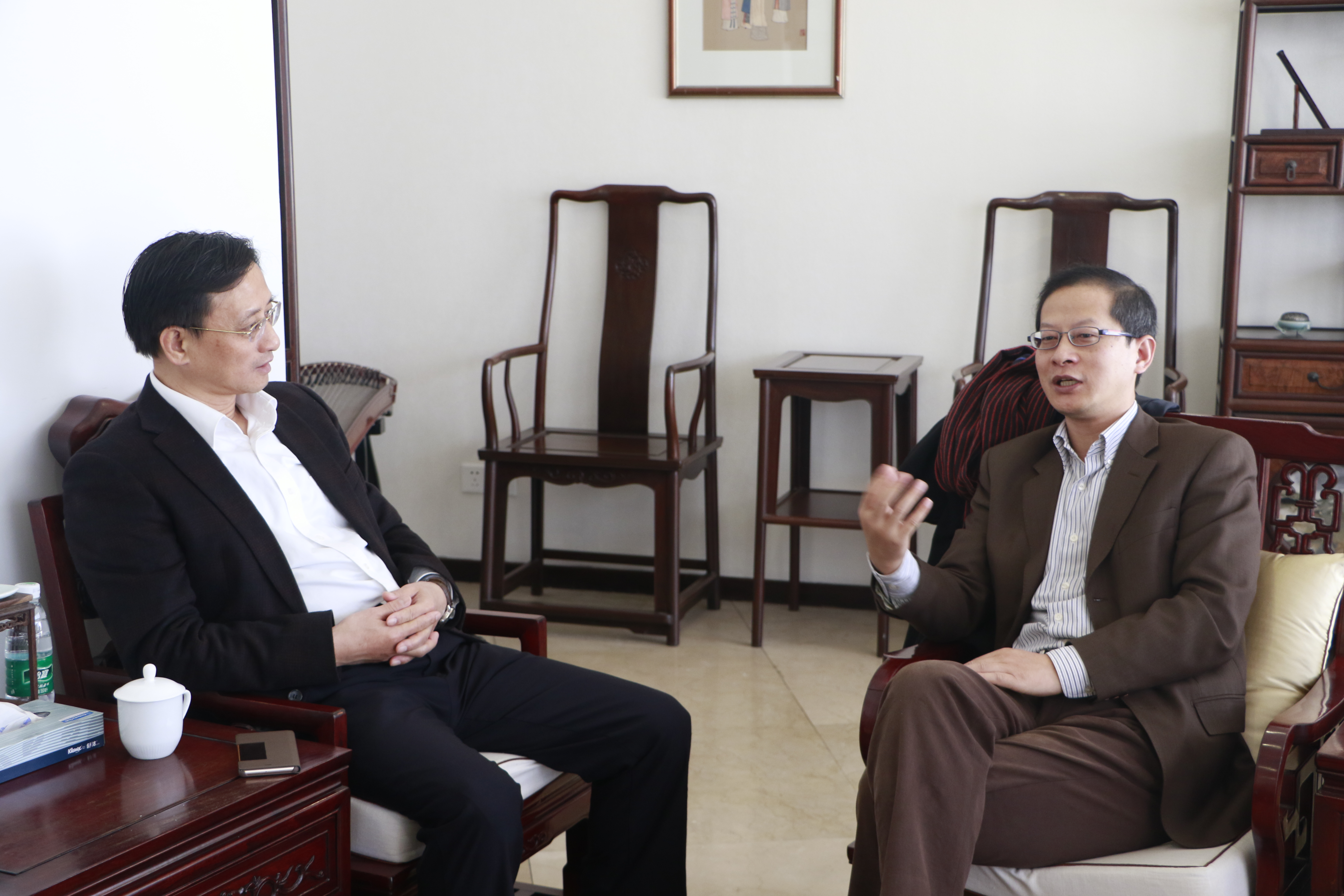 2016年11月11日上午,文化部外聯局局長助理鄭浩、江蘇省文化廳對外文化交流處處長官天濤一行蒞臨愛濤文化藝術中心指導工作。蘇豪控股集團副總裁李結祥、愛濤文化集團常務副總陳云梅接待并參與座談會。